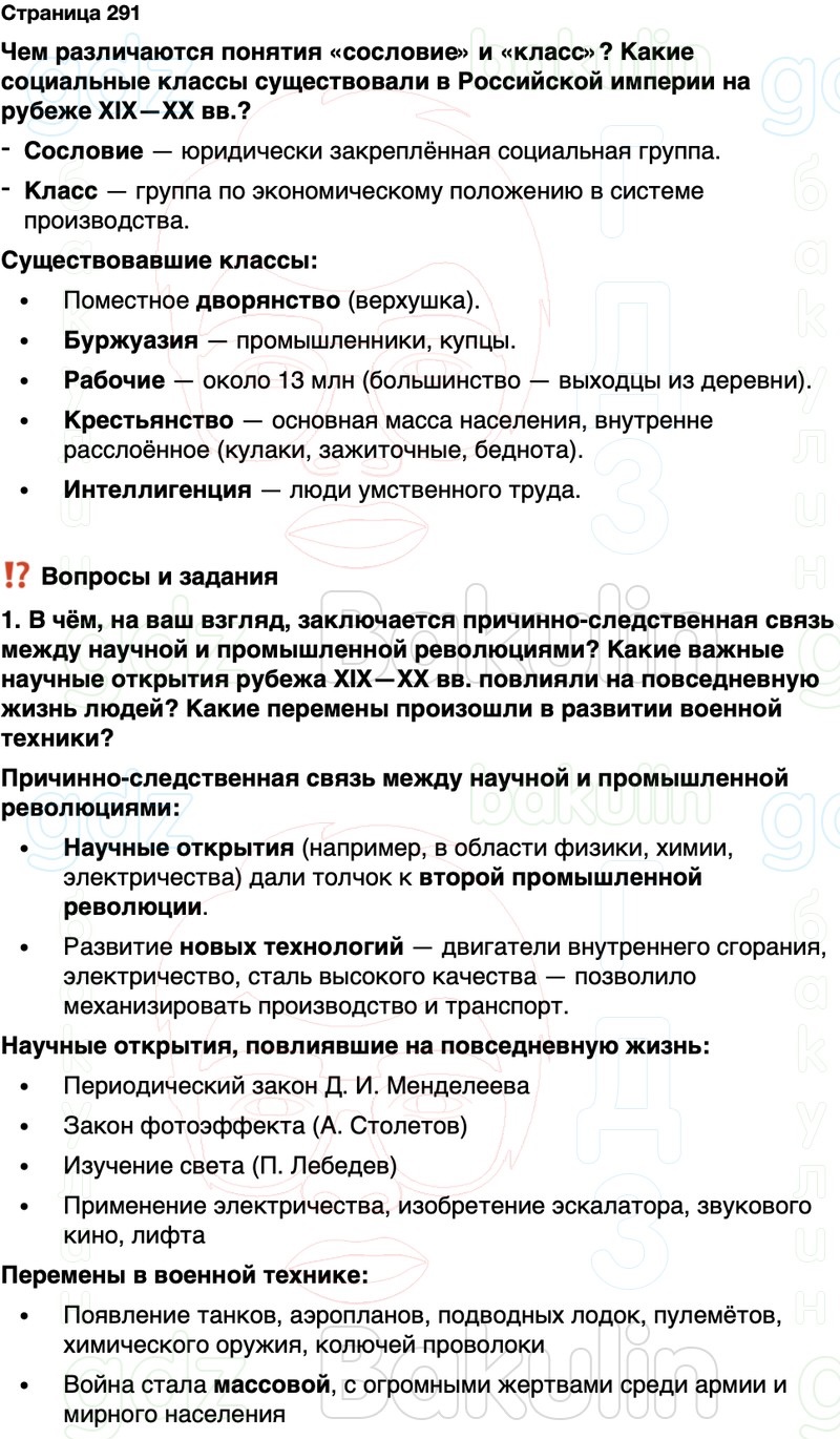 1. В чём, на ваш взгляд, заключается причинно-следственная связь между научной и промышленной революциями? Какие важные научные открытия рубежа ХІХ—XX вв. повлияли на повседневную жизнь людей? Какие перемены произошли в развитии военной техники?