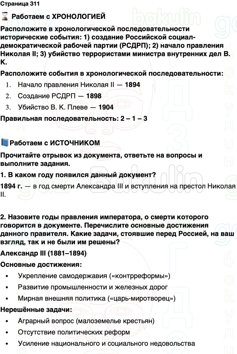 Расположите в хронологической последовательности исторические события: 1) создание Российской социал-демократической рабочей партии (РСДРП); 2) начало правления Николая II; 3) убийство террористами министра внутренних дел В. К.