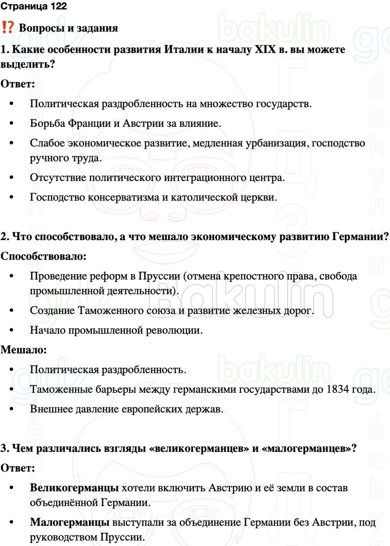1. Какие особенности развития Италии к началу XIX в. вы можете выделить?