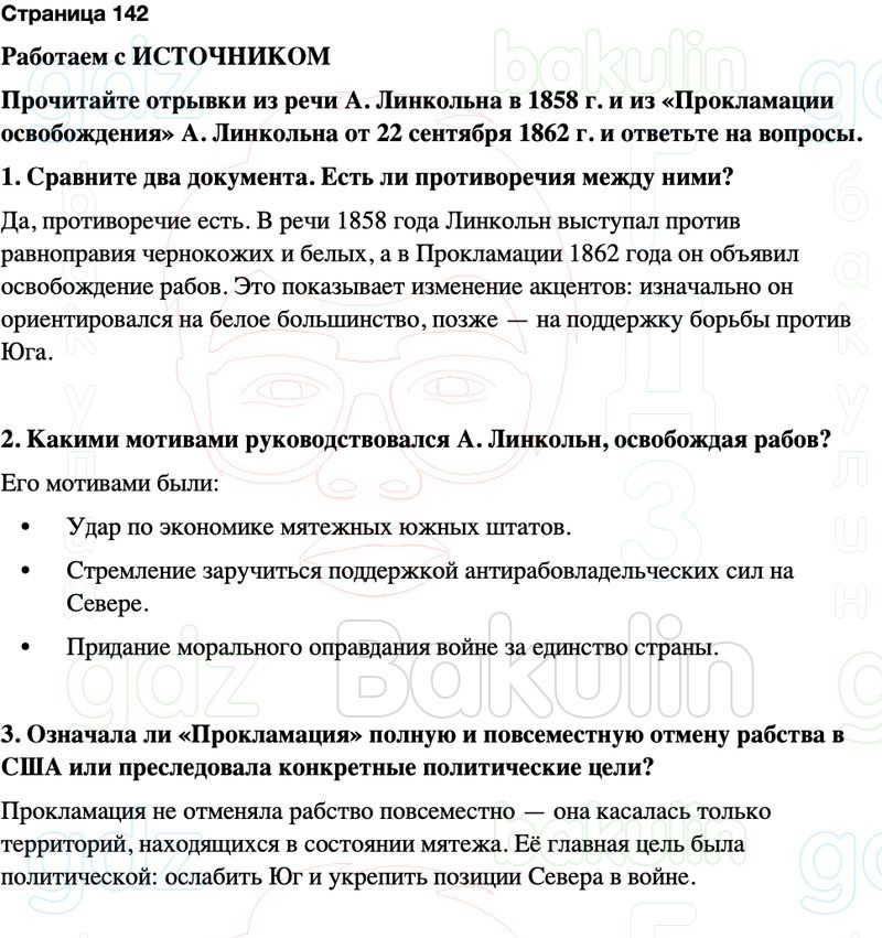 Прочитайте отрывки из речи А. Линкольна в 1858 г. и из «Прокламации освобождения» А. Линкольна от 22 сентября 1862 г. и ответьте на вопросы.