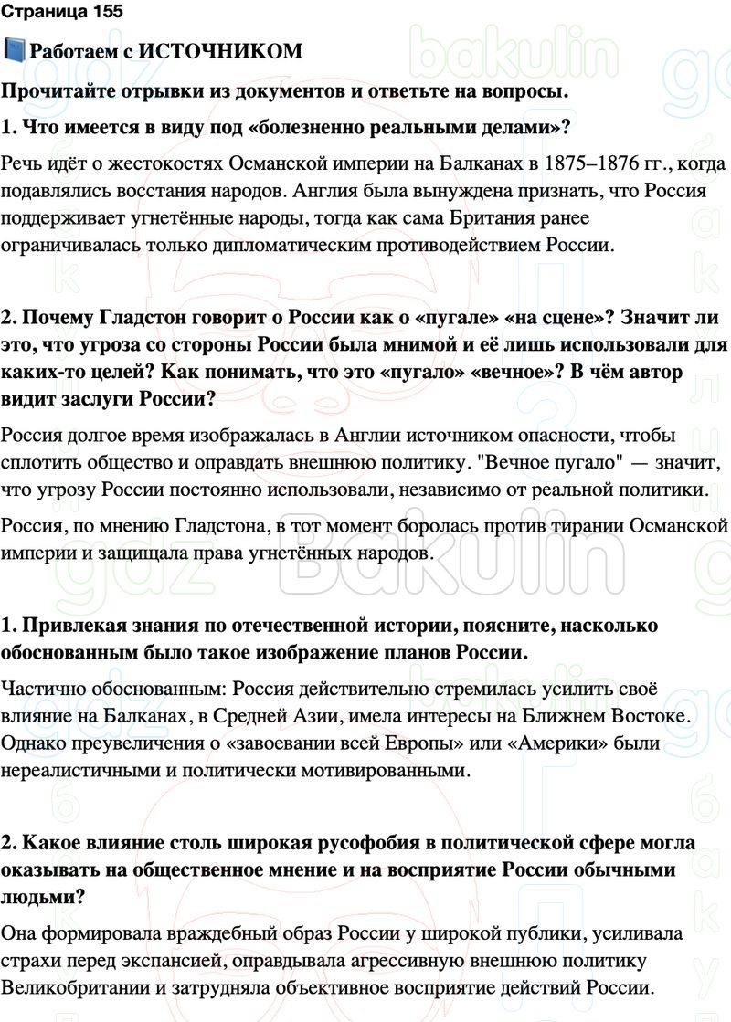 2. Почему Гладстон говорит о России как о «пугале» «на сцене»? Значит ли это, что угроза со стороны России была мнимой и её лишь использовали для каких-то целей? Как понимать, что это «пугало» «вечное»? В чём автор видит заслуги России?