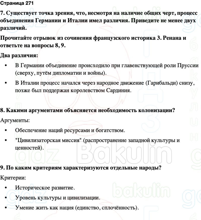 7. Существует точка зрения, что, несмотря на наличие общих черт, процесс объединения Германии и Италии имел различия. Приведите не менее двух различий. Прочитайте отрывок из сочинения французского историка 3. Ренана и ответьте на вопросы 8, 9.