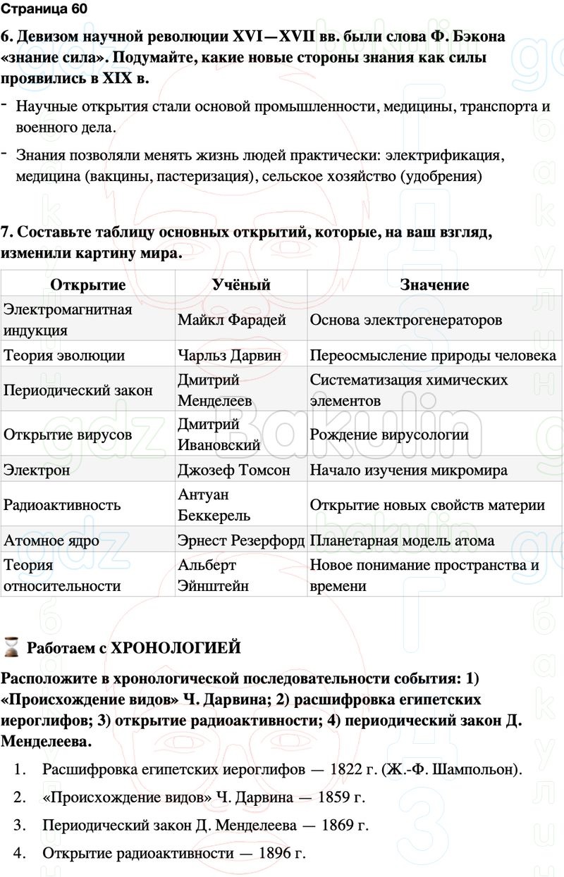 6. Девизом научной революции XVI—XVII вв. были слова Ф. Бэкона «знание сила». Подумайте, какие новые стороны знания как силы проявились в XIX в.