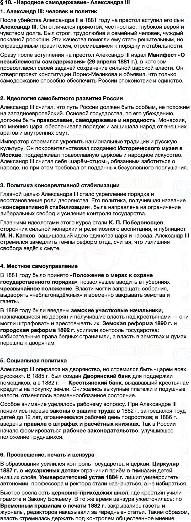 Краткое содержание §18. «Народное самодержавие» Александра III по истории России 9 класс Мединский, Торкунов представлено в двух видах: развернутое и кратчайшее содержание параграфа. Скорость прочтения материала от 3 до 7 минут.