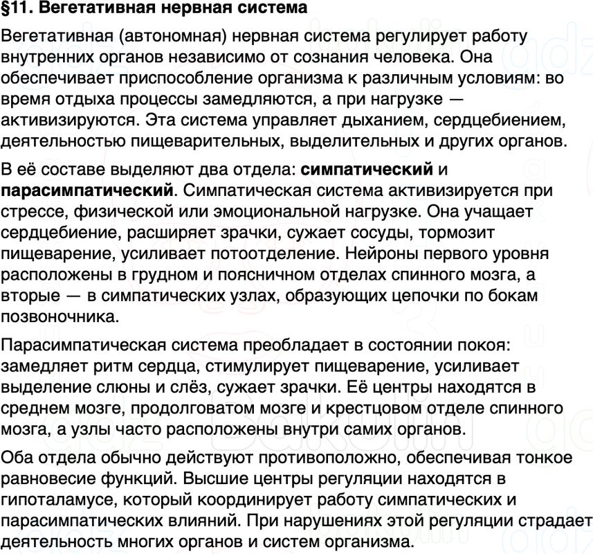 Краткое содержание Параграф 11 Вегетативная нервная система
