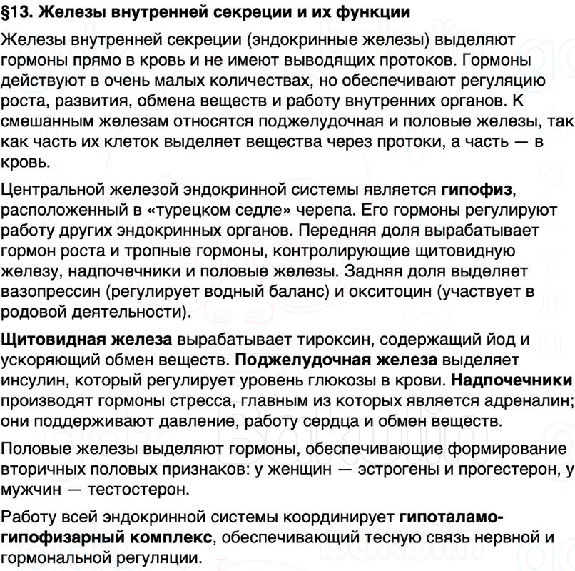 Краткое содержание Параграф 13 Железы внутренней секреции и их функции