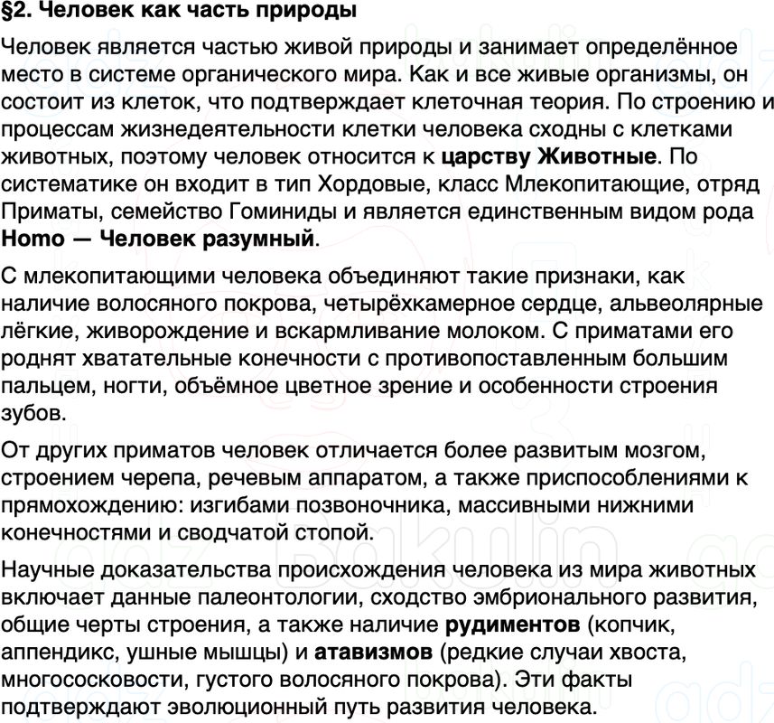 Краткое содержание Параграф 2 Человек как часть природы