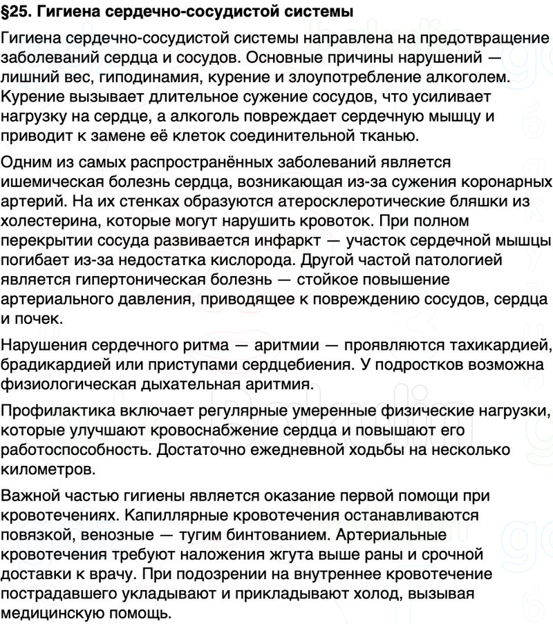 Краткое содержание Параграф 25 Гигиена сердечно-сосудистой системы