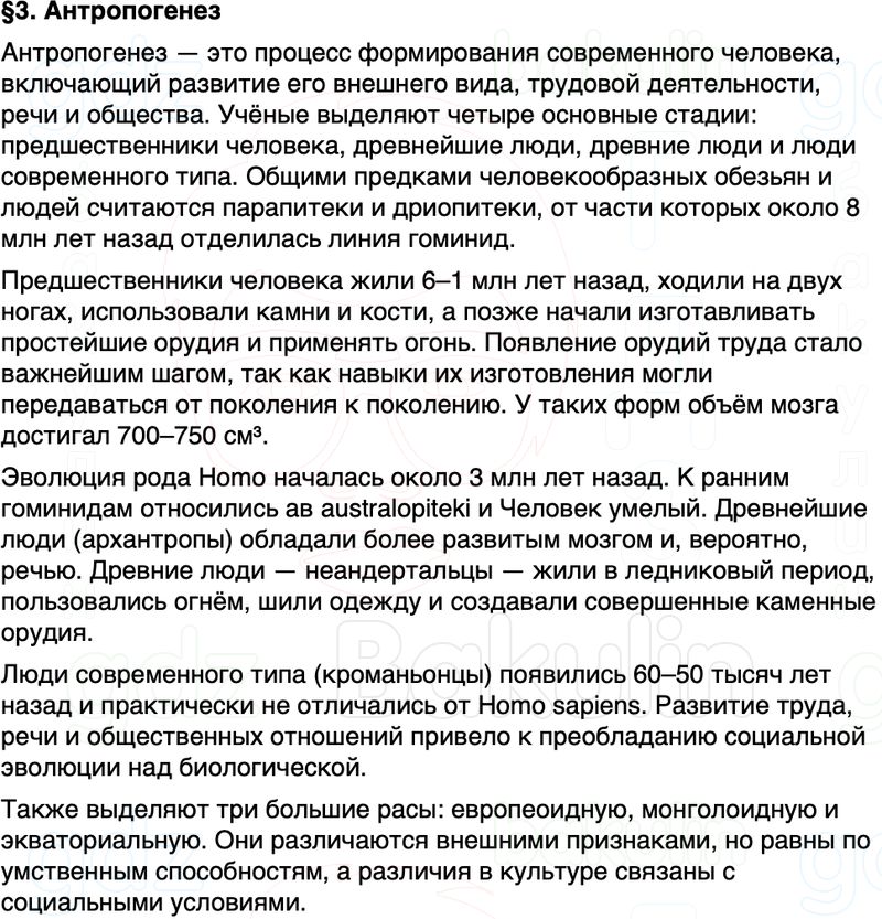 Правильный ответ к заданию Краткий пересказ содержание Биология 9 класс Пасечник конспекты Параграф, номер 3 бесплатно онлайн