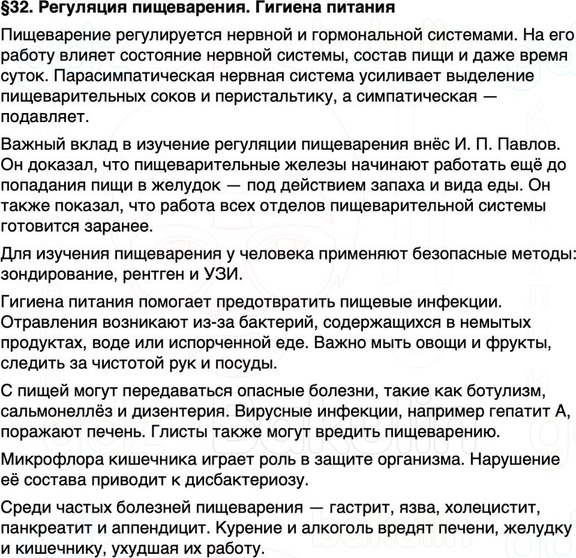 Краткое содержание Параграф 32 Регуляция пищеварения Гигиена питания