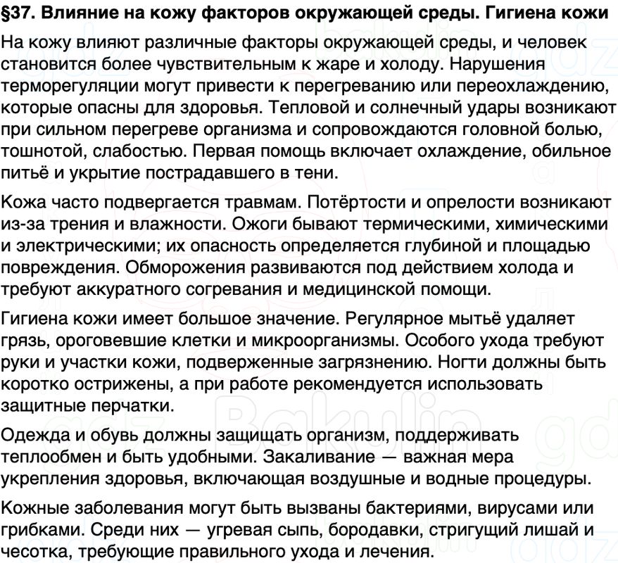 Краткое содержание Параграф 37 Влияние на кожу факторов окружающей среды Гигиена кожи