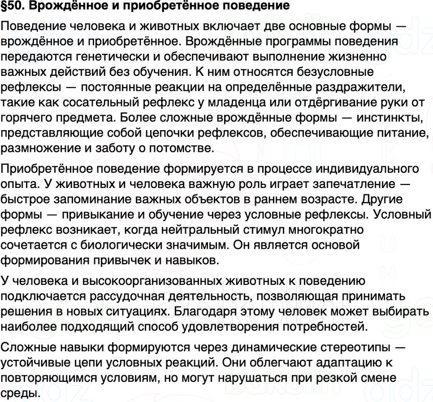 Краткое содержание Параграф 50 Врождённое и приобретённое поведение