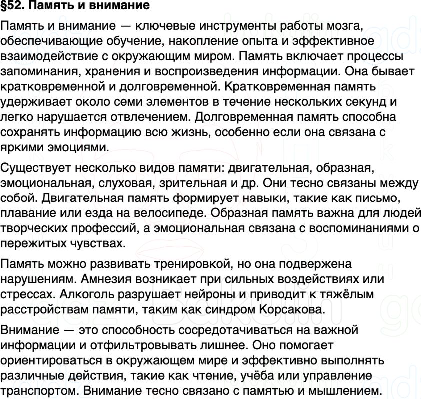 Правильный ответ к заданию Краткий пересказ содержание Биология 9 класс Пасечник конспекты Параграф, номер 52 бесплатно онлайн