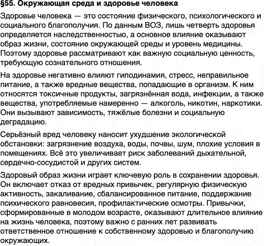 Краткое содержание Параграф 55 Окружающая среда и здоровье человека