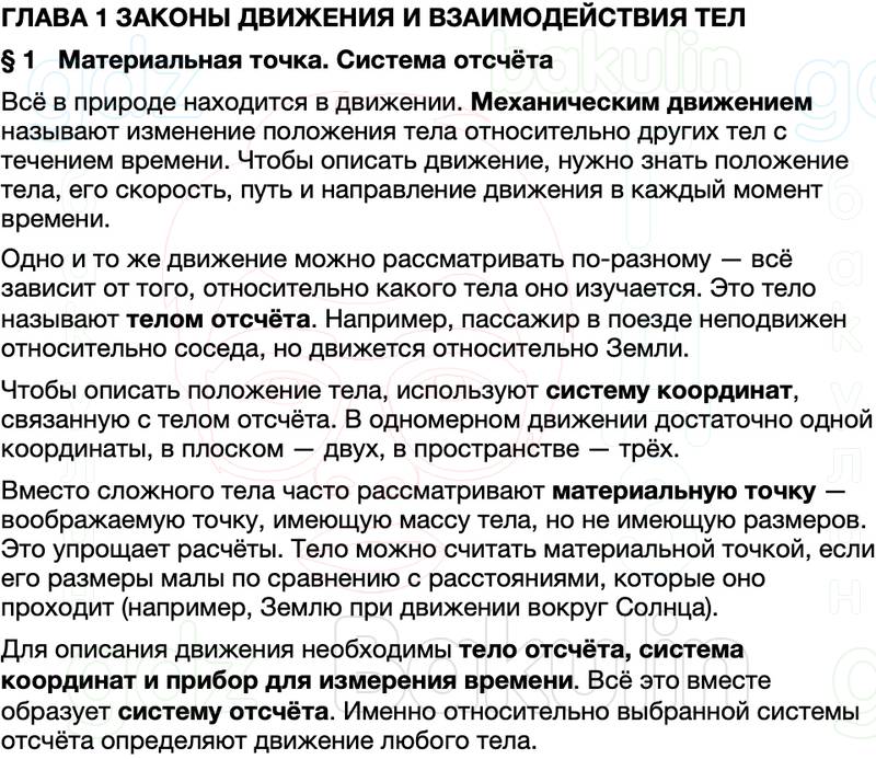 Краткое содержание Параграф 1 Материальная точка. Система отсчёта Физика 9 класс Перышкин