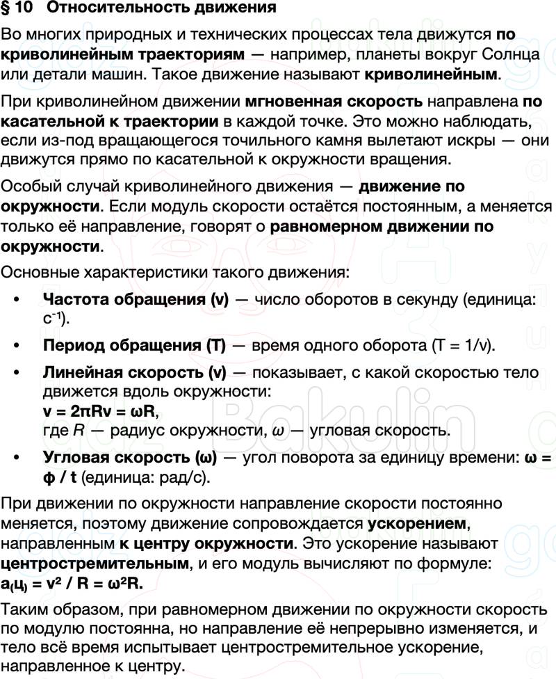 Краткое содержание Параграф 10 Относительность движения Физика 9 класс Перышкин