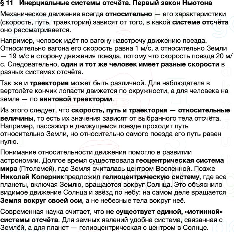 Краткое содержание Параграф 11 Инерциальные системы отсчёта. Первый закон Ньютона Физика 9 класс Перышкин