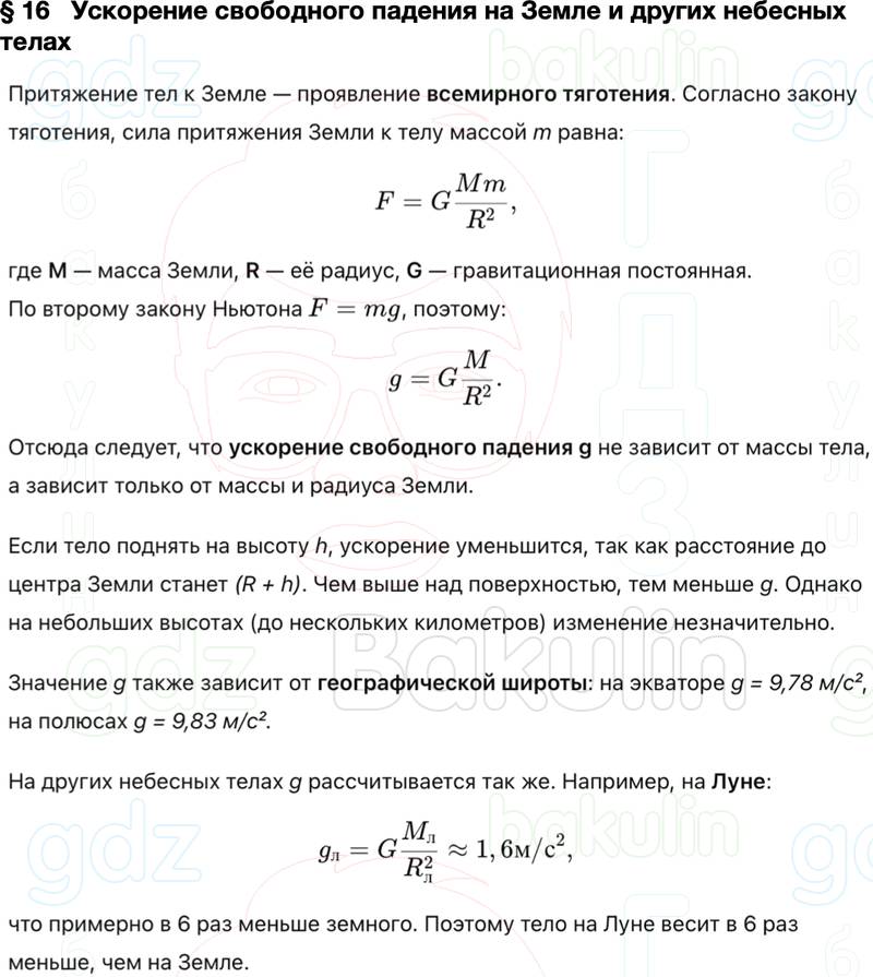 Краткое содержание Параграф 16 Ускорение свободного падения на Земле и других небесных телах Физика 9 класс Перышкин