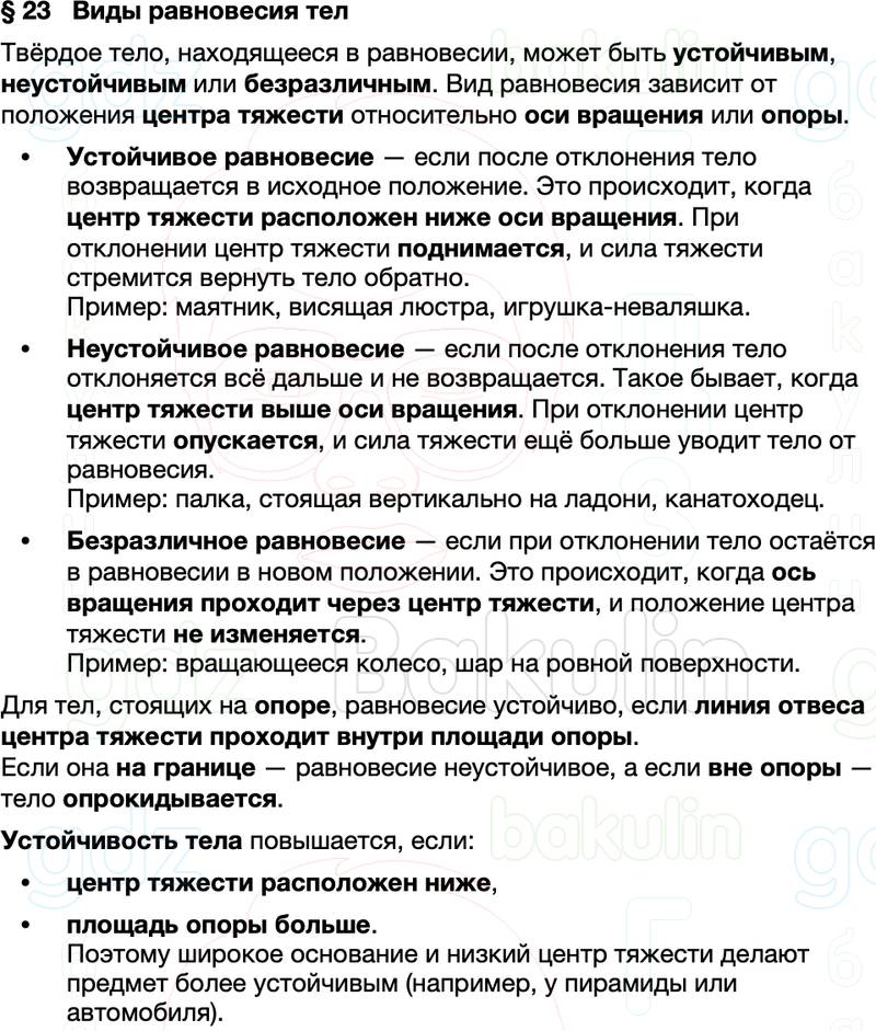 Краткое содержание Параграф 23 Виды равновесия тел Физика 9 класс Перышкин