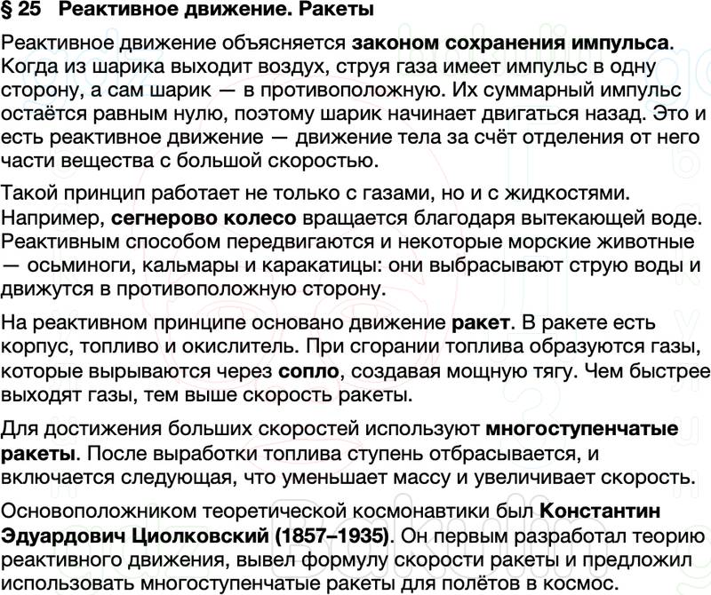 Краткое содержание Параграф 25 Реактивное движение. Ракеты Физика 9 класс Перышкин