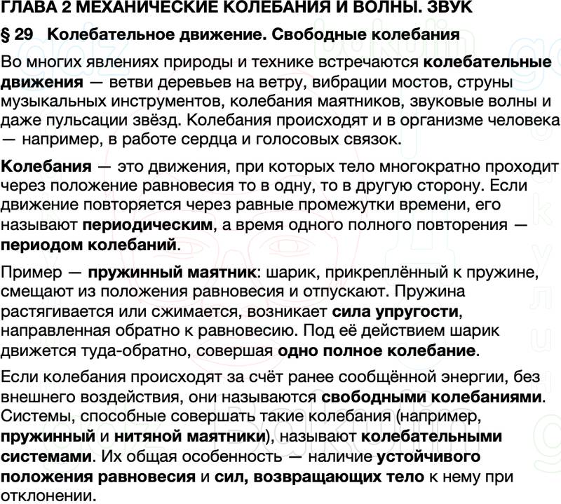 Краткое содержание Параграф 29 Колебательное движение. Свободные колебания Физика 9 класс Перышкин