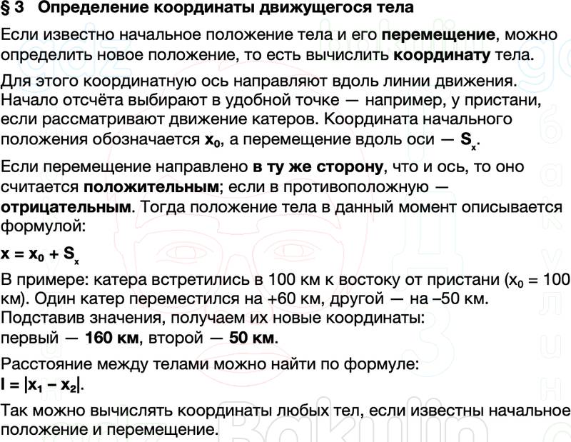 Краткое содержание Параграф 3 Определение координаты движущегося тела Физика 9 класс Перышкин