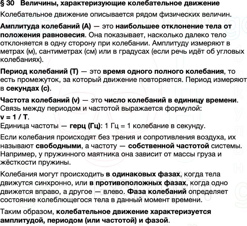 Краткое содержание Параграф 30 Величины, характеризующие колебательное движение Физика 9 класс Перышкин