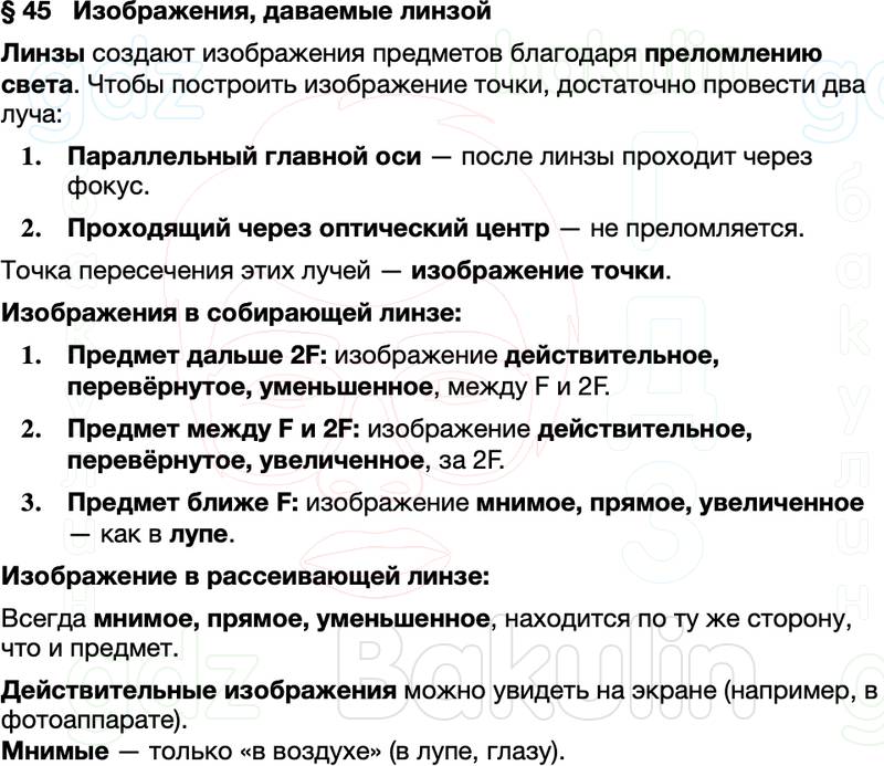 Краткое содержание Параграф 45 Изображения, даваемые линзой Физика 9 класс Перышкин