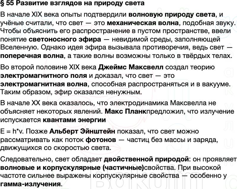 Краткое содержание Параграф 55 Развитие взглядов на природу света Физика 9 класс Перышкин