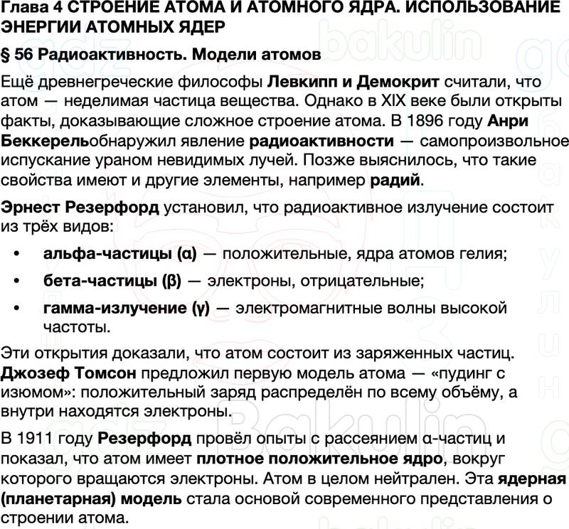 Краткое содержание Параграф 56 Радиоактивность. Модели атомов Физика 9 класс Перышкин
