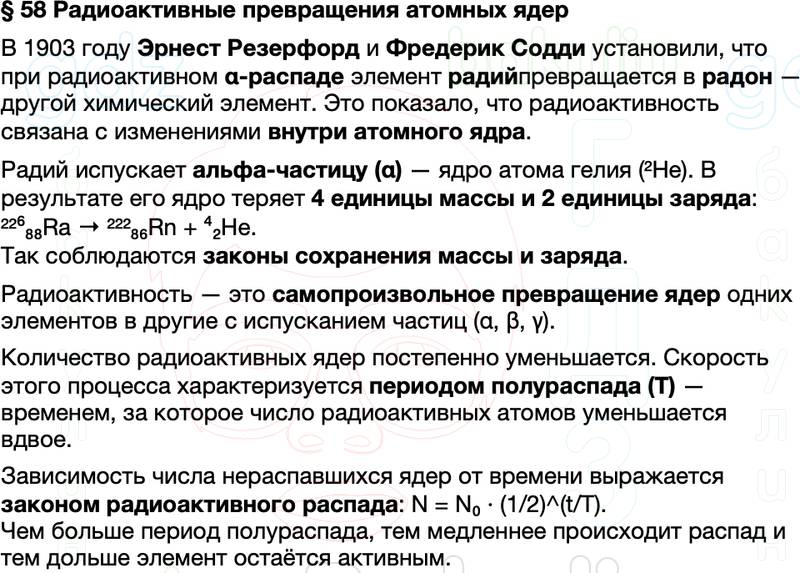 Краткое содержание Параграф 58 Радиоактивные превращения атомных ядер Физика 9 класс Перышкин
