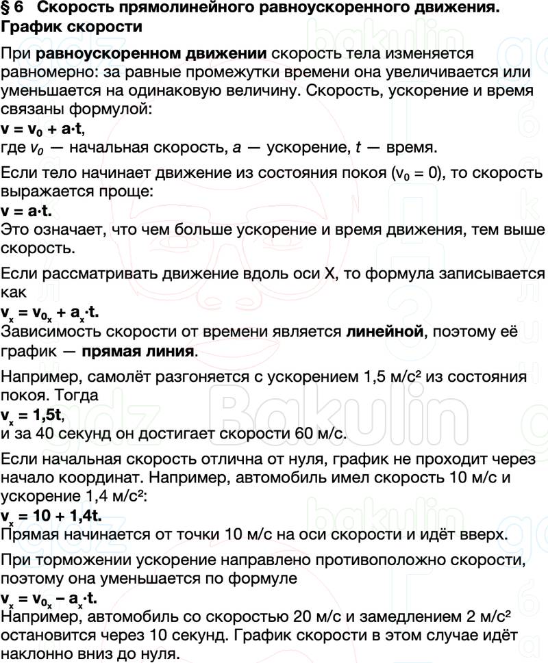 Краткое содержание Параграф 6 Скорость прямолинейного равноускоренного движения. График скорости Физика 9 класс Перышкин