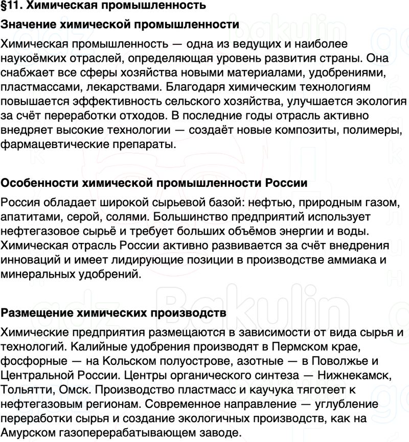 Краткое содержание Параграф 11 Химическая промышленность География 9 класс Алексеев