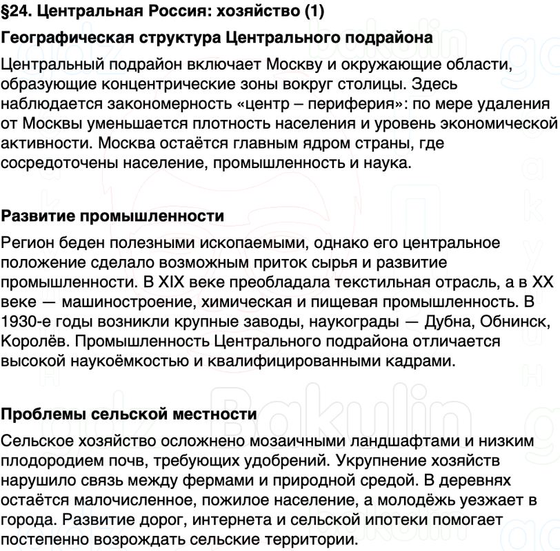 Краткое содержание Параграф 24 Центральная Россия: хозяйство (1) География 9 класс Алексеев
