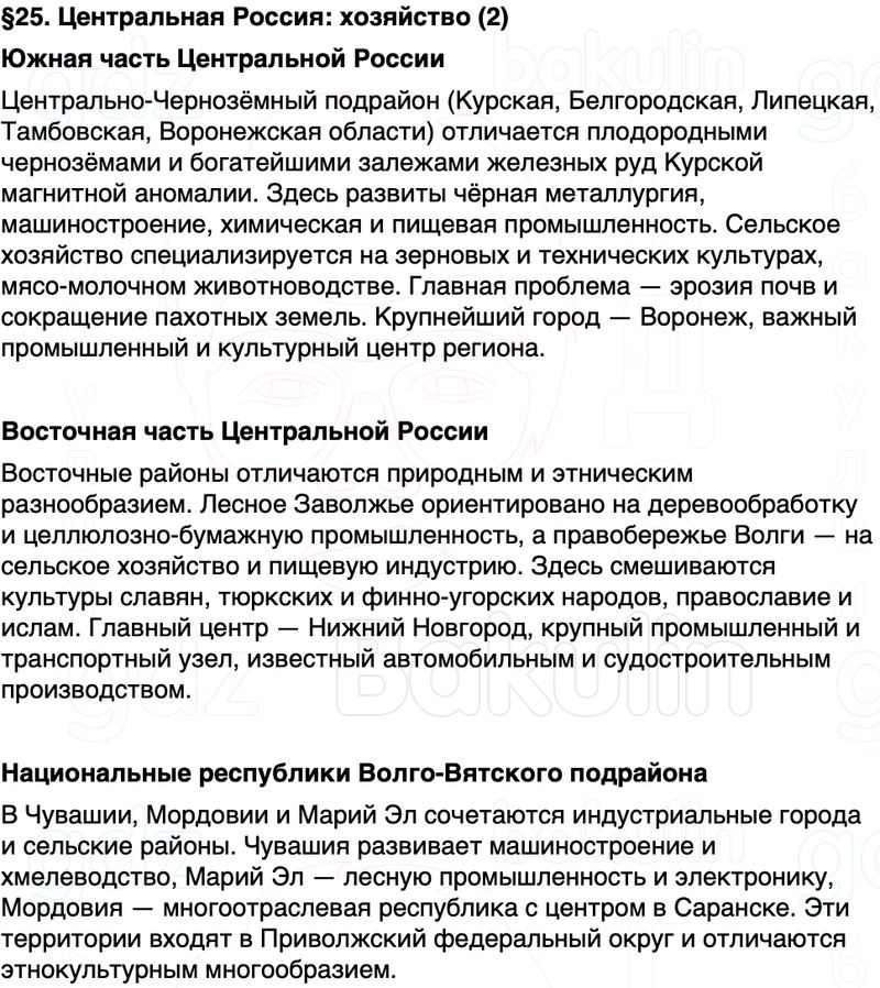 Краткое содержание Параграф 25 Центральная Россия: хозяйство (2) География 9 класс Алексеев