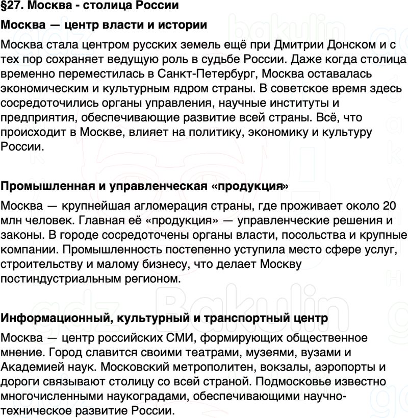 Краткое содержание Параграф 27 Москва - столица России География 9 класс Алексеев