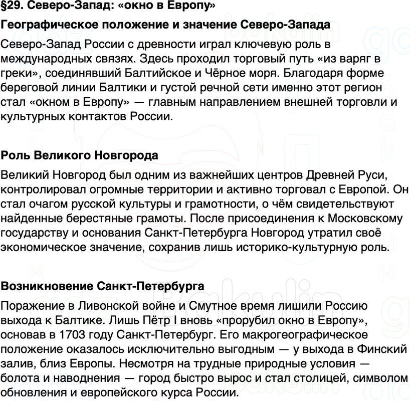 Краткое содержание Параграф 29 Северо-Запад: «окно в Европу» География 9 класс Алексеев