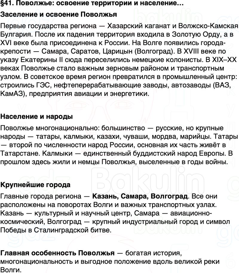 Краткое содержание Параграф 41 Поволжье: освоение территории и население География 9 класс Алексеев