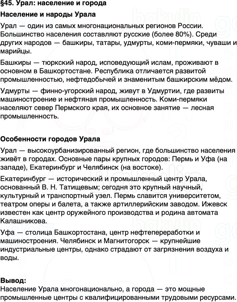 Краткое содержание Параграф 45 Урал: население и города География 9 класс Алексеев
