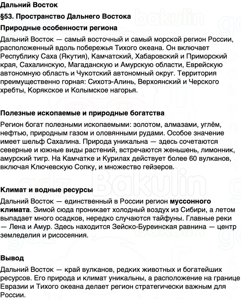 Краткое содержание Параграф 53 Пространство Дальнего Востока География 9 класс Алексеев