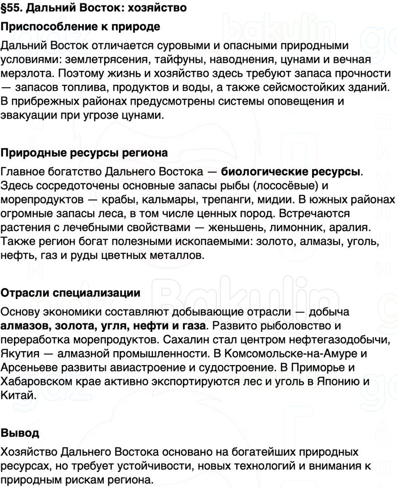 Краткое содержание Параграф 55 Дальний Восток: хозяйство География 9 класс Алексеев