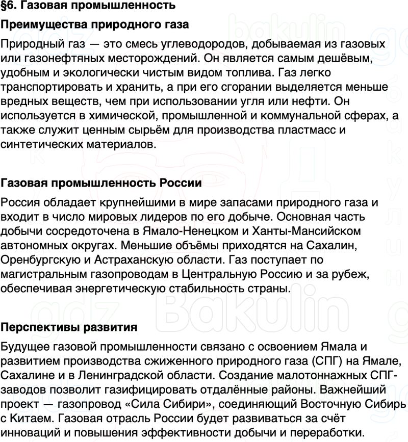 Краткое содержание Параграф 6 Газовая промышленность География 9 класс Алексеев